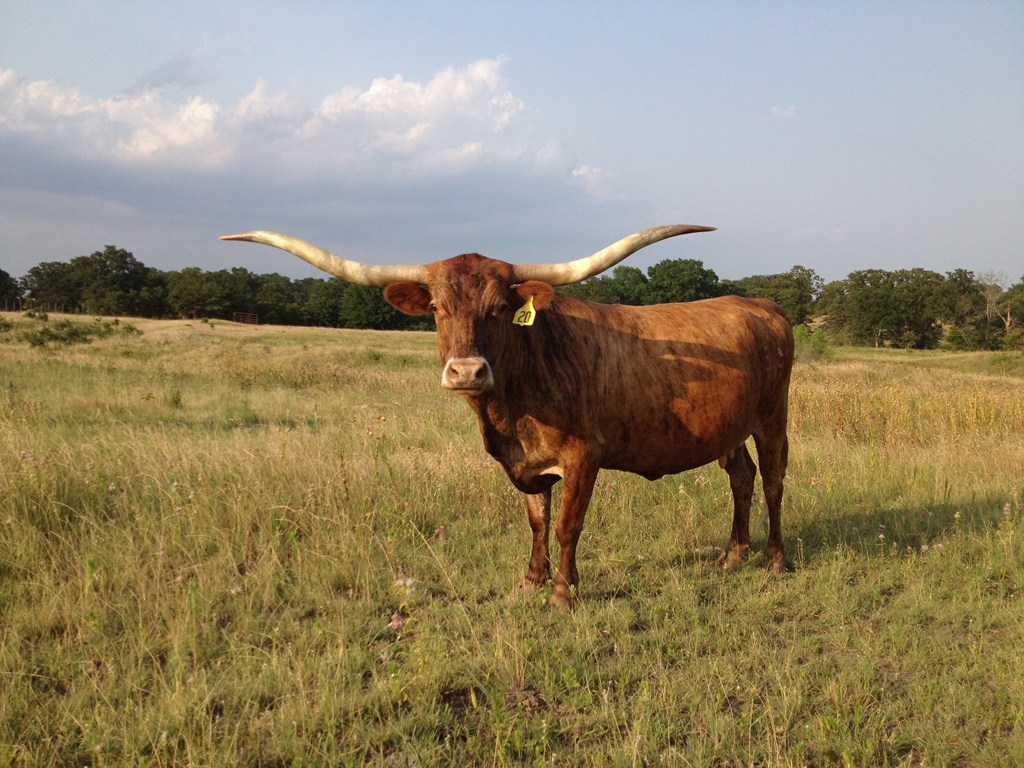 A big bodied brindle cow with lateral horns that outproduces herself. Her heifer almost won her class at the LWC.